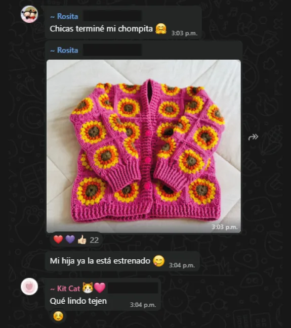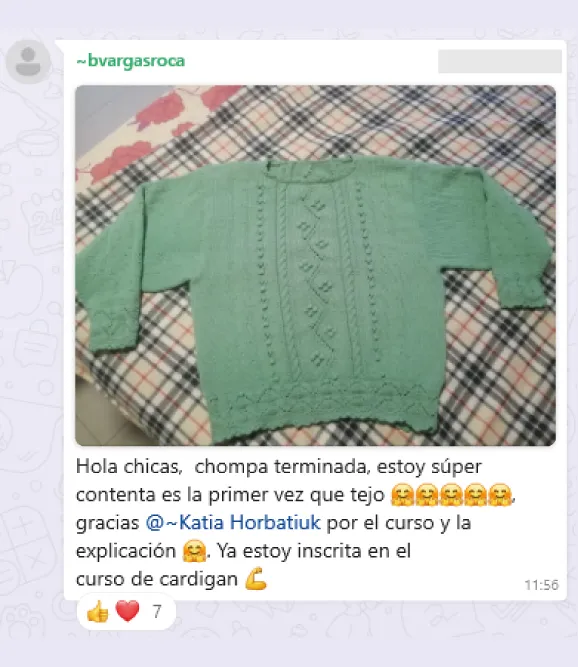 Acceso al grupo privado de tejedoras, donde encontrarás apoyo, motivación e inspiración diaria.